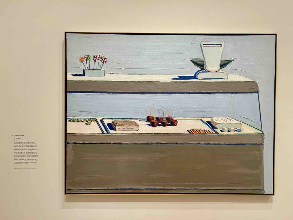 • Wayne Thiebaud. American Still Life: a tightly-focussed, totally luscious exhibition in two rooms at the Courtauld Gallery (and on until 18 January) – paintings from the 1960s that are intense and poised and utterly pleasing yet rigorous, and in love with their medium; above, Candy Counter, 1962.