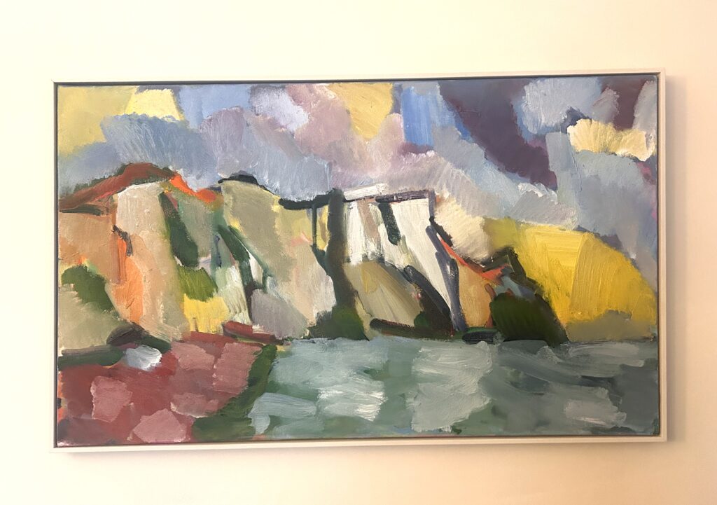 • Seaford Head from Splash Point, Early Morning, July-August, 2024: in memory of Clare’s mother Beryl, who died in 2024, we bought the glowing landscape above by the wonderful painter Julian Le Bas, and it means so, so much to have it hanging in our front room.