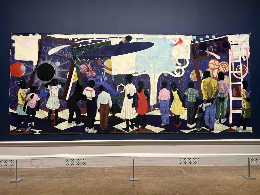 • Kerry James Marshall – The Histories: you have until 18 January to catch this magnificent Royal Academy show, with the artist’s compelling and moving paintings of Black life in the United States; reader, there was a tear in my eye as I stood marvelling before Knowledge and Wonder, 1995 (above), created for a Chicago public library, and so full of hope and joy.