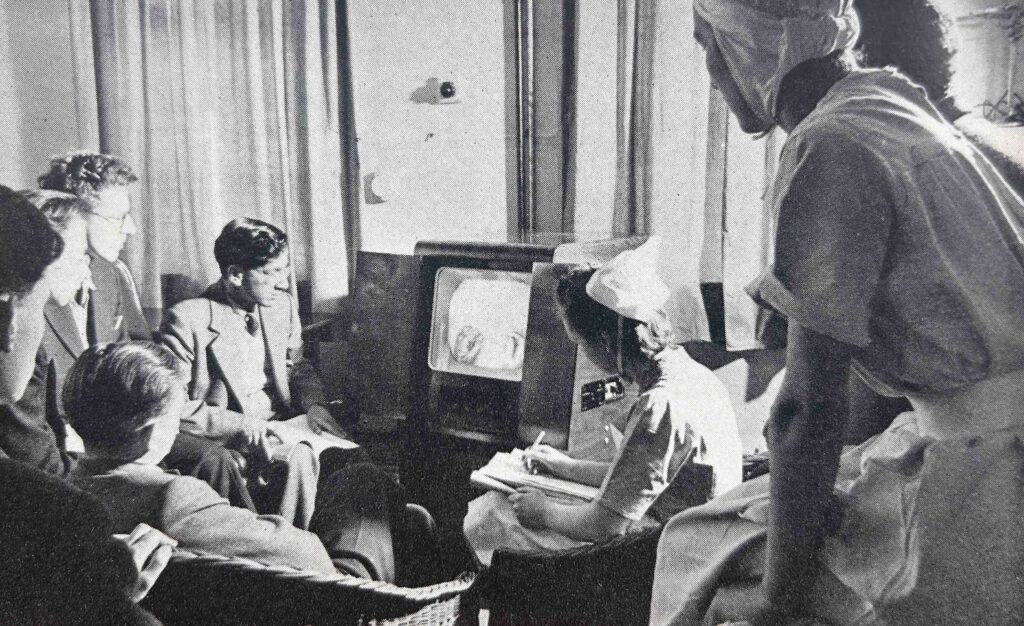 In May 1949 Guy’s Hospital, London, installed the first permanent equipment for televising operations. The television unit was specially designed for this purpose by EMI, and consists of an overhead lighting unit, microphone, and camera, with remote control of movement, focusing, and lens selection (one lens giving a magnified close-up).