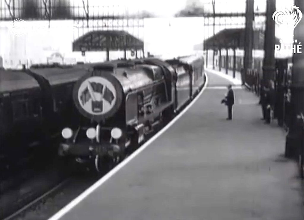 From 5.13pm for 20 minutes lookers-in saw the arrival of the Royal Train and then the elaborate ceremony of greetings on the platform with, among others, Prime Minister Neville Chamberlain, United States ambassador Joseph Kennedy, and Chairman of the Southern Railway, Mr R. Holland Martin. Freddie Grisewood was the BBC’s man on the spot, and a press report detailed that one television camera ‘was trained on Princess Margaret, following her movements closely’.