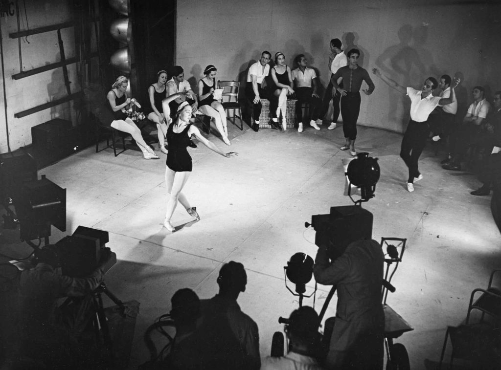 Performances were given at AP in 1937, 1938 and 1939, but the great innovation came on 28 June in the first summer when a rehearsal class was broadcast from Studio A by a company that included two of the celebrated ‘baby ballerinas’, Tatiana Riabouchinska and Irina Baronova. One remarkable image (above) captures Baronova and George Zoritch dancing the pas de deux from Gluck’s Orphée