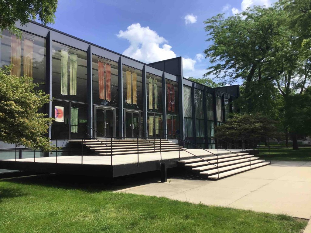 John Wyver writes: A second missive from the mid-West, following on from Postcard from Chicago, part one. And let me begin with a tale of two campuses (campi?). One morning this past I explored the low-level lay-out of the Illinois Institute of Technology, conceived and begun by Ludwig Mies van der Rohe in the immediate post-war years. It’s a seductive modern(ist) world distinguished by a number of Mies’ key buildings, including the hugely influential S.R. Crown Hall, 1956, above.