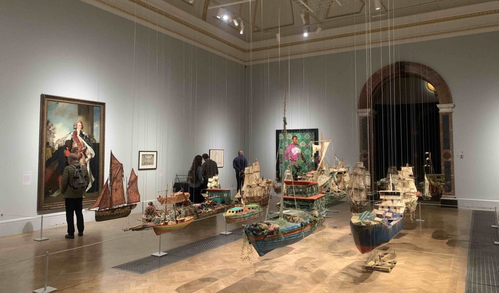 John Wyver writes: a little late this week, and I’m completing the choice on a train to Stratford-upon-Avon for a final RSC “goodbye” to Greg Doran – as usual, here are a dozen articles and audio elements that I found especially engaging this past week. Plus, although I don’t have an article linked to it, above is a room in the Royal Academy’s terrific Entangled Pasts: 1768-Now exhibition, with Hew Locke’s glorious Armada (2017-19) installed amongst a selection of grand manner history paintings plus a dazzling Kehinde Wiley portrait. Go see the show.