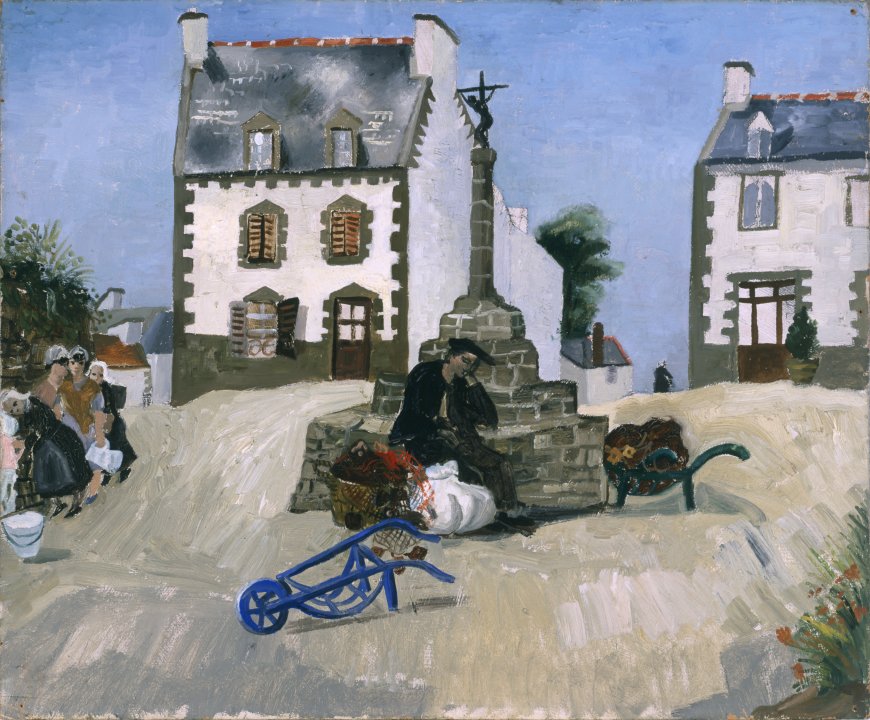 More recent work included a view of Muzzano by Carl [or Karl] Hofer, Paul Nash’s ‘Sussex Landscape’ (possibly ‘Landscape at Iden’, 1929, still available from Tate as a print), ‘Market Cross, Treboul’ (above), a very fine 1930 painting by Christopher Wood, and an ‘Antelope’ by John Skeaping, an artist who appeared in several of Adams’ inter-war broadcasts.
