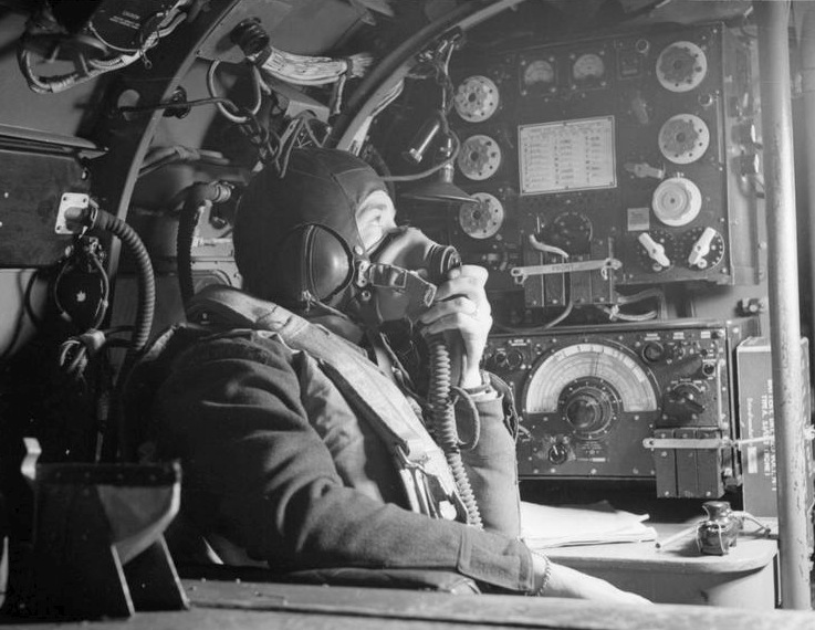 Image: Flying Officer R W Stewart, a wireless operator on board an Avro Lancaster B Mark I of No. 57 Squadron RAF based at Scampton, Lincolnshire, speaking to the pilot from his position in front of the Marconi TR 1154/55 transmitter/receiver set; Royal Air Force official photographer, Clark N S (Plt Off), Public domain, via Wikimedia Commons.