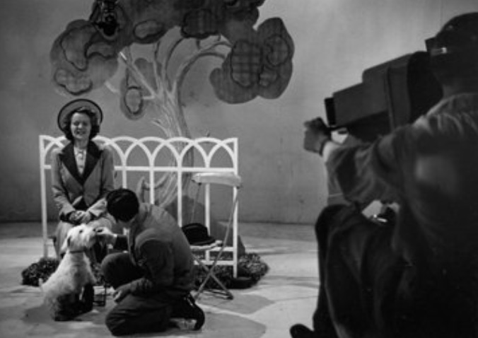 The main characters are Ann Teviot, in the language of the cast list ‘a spinster’, played by Ann Todd, and bachelor Harold Warden, a role taken by William Hutchison. Since the episode is called ‘Their First Meeting’, this is clearly what fans would later recognise as ‘the meet-cute’. Presumably the dog in the photo above, a Sealyham Terrier called Tuppence, is key to the encounter.