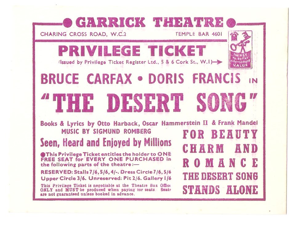 John Wyver writes: Across nearly three hours on the evening of Thursday 13 July 1939 an outside broadcast of the operetta The Desert Song was transmitted from the Garrick Theatre in London’s West End. By this point the BBC’s mobile units were practiced at full-length relays of stage shows, but an especially dark scene in the drama posed a problem that in turn prompted an imaginative solution.