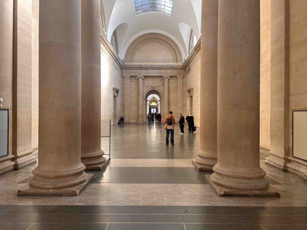 Although I have noticed this quirk before, I was especially taken today by the ‘ghost’ shadows on the stone (marble?) paving. Marks made by heavy sculptural installations from the past, these seem to inhabit the floor of the south Duveen gallery in a rather unique way. Something about the surface means that these traces of lost exhibitions persistently resist cleaning away.