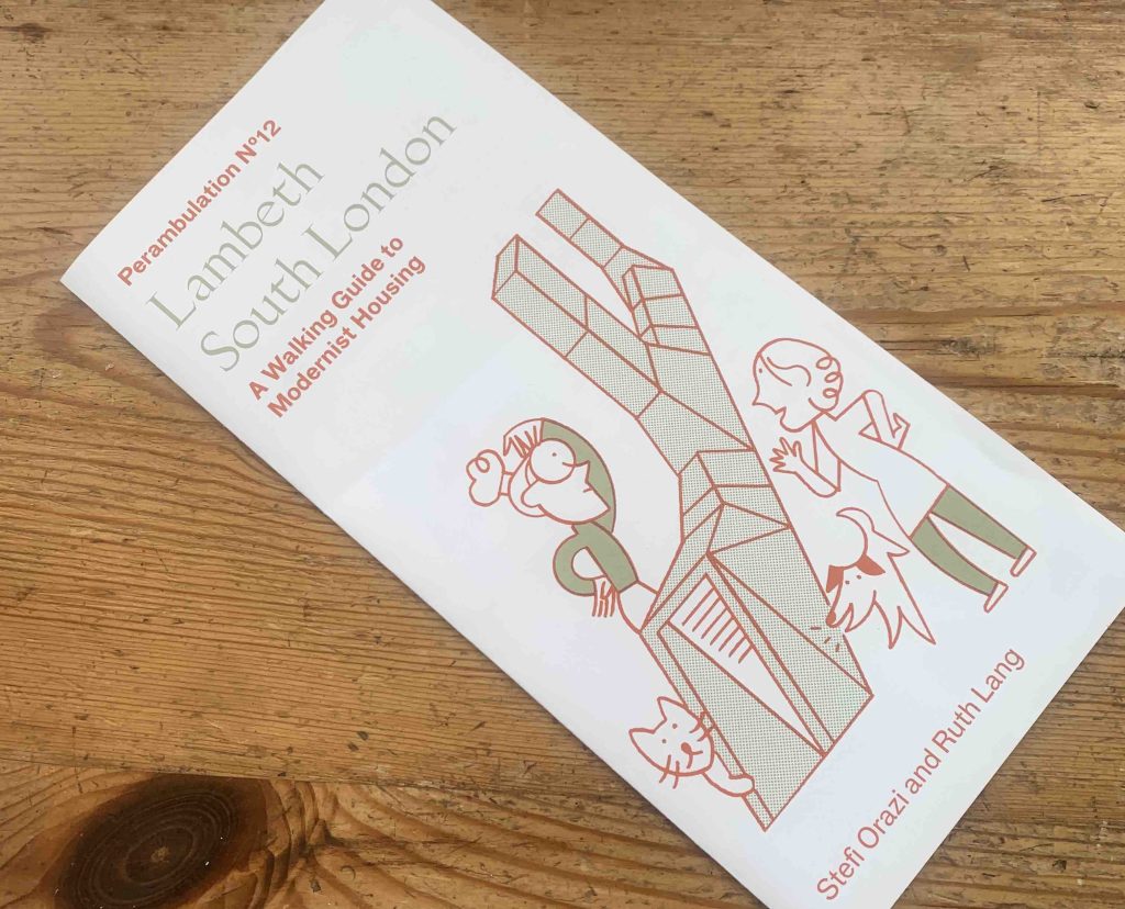 Written by Stefi Orazi and Ruth Lang, Perambulation no.12 is for modernist housing in Lambeth South London, and Clare and I followed its route last Sunday morning. A perfectly-pitched combination of historical detail and aesthetic judgement ensures that you see so much more of the built environment through which you’re walking. There are constant surprises and delights, some of which are noted in the guide and others which are not.