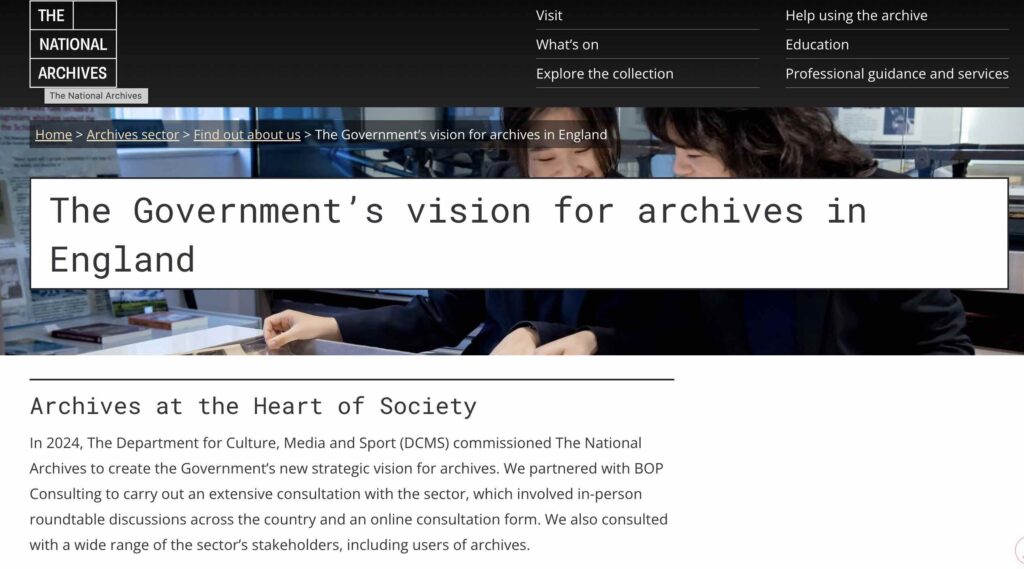 John Wyver writes: Ten days ago, with perhaps rather too little fanfare, the Government released a new strategic vision for archives. Commissioned from The National Archives (TNA) and launched by Baroness Twycross, Minister for Museums, Heritage and Gambling, this involved, as the project’s website notes, ‘an extensive consultation with the sector… in-person roundtable discussions across the country and an online consultation form. We also consulted with a wide range of the sector’s stakeholders, including users of archives.’