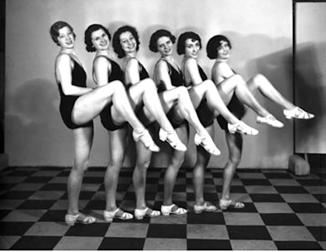 After processing, the quality of the four-minute silent video recording was adequate to recognise what was happening. The dancing girls were fascinating subjects. They were wearing dark one-pieve bathing suit outfits and were bareheaded.