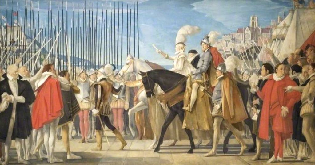 Then commentator Edward Halliday, a noted painter and radio broadcaster, accompanied the cameras into the RA’s Vestibule and galleries 1, 2 and 3. Among those who Halliday encountered were grandees Eric Gill, A.K. Lawrence and President of the RA Sir Edwin Lutyens as well as Louisa Hodgson and ‘Miss Bethel’ (the internet draws a blank; any ideas anyone?). Among the works viewed, as a remarkable photograph shows, was Lawrence’s massive ‘Queen Elizabeth reviewing her armies at Tilbury’.