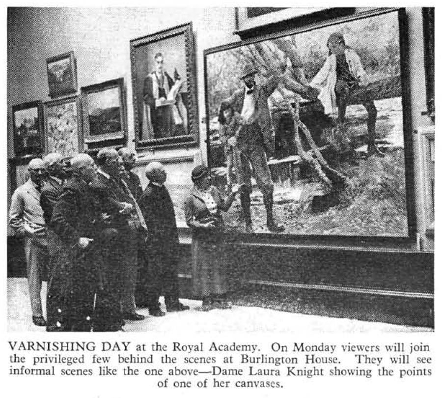 As the cameras moved round the galleries, Mr Edward Halliday, who provided the commentary, was greeted by fellow artists, by a student from the Academy Schools, and by the President, Sir Edwin Lutyens. It was all very casual and pleasant and gave a real impression of informality, so that viewers were given a good idea of what a Varnishing Day is like.