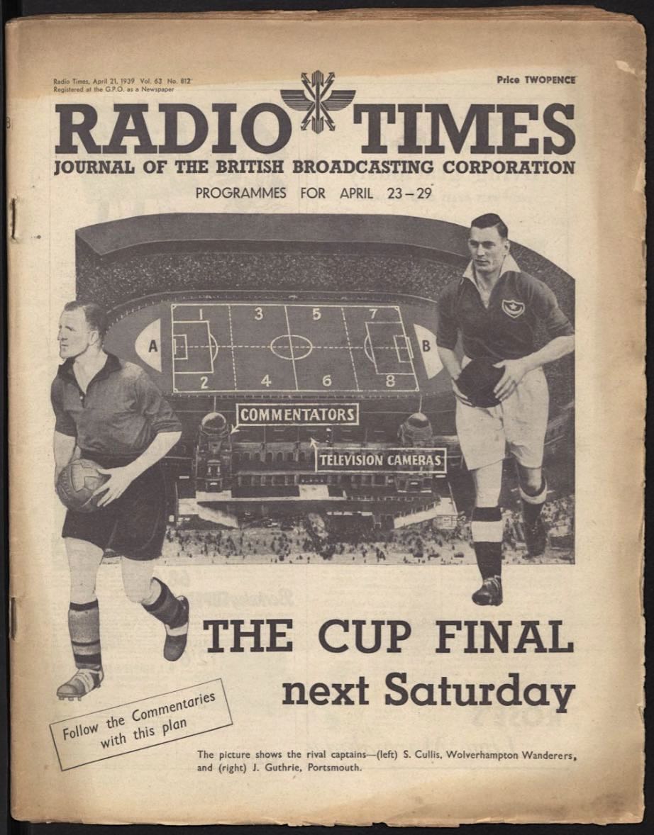 John Wyver writes: Saturday 29 April 1939 was some way off the heady days of my youth when FA Cup Final day was one of those rare and much-anticipated occasions when television began early on a Saturday morning. But already this was the medium’s third big match, starting at 2.40pm with community singing and the arrival of the King, and running through until closedown at 4.45pm.