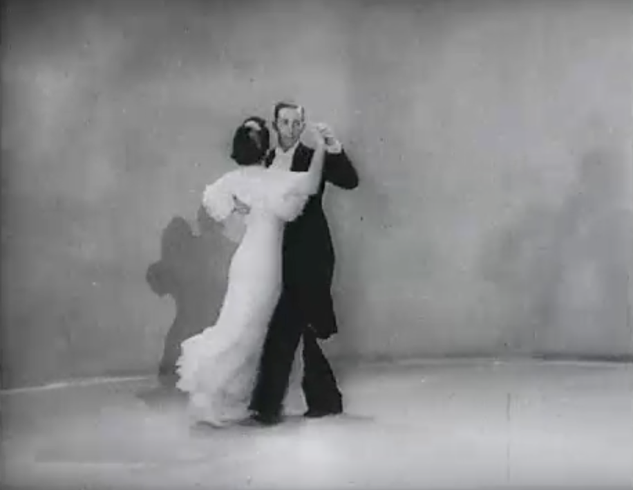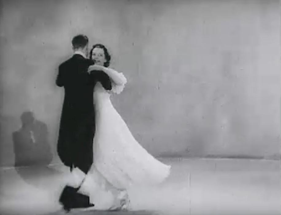 Their flair as dancers and the penny-plain presentation style, with the couple in evening dress set against a bare background and held in a long-shot that pans back and forth with their movements, can be seen in the BBC Television Demonstration Film, shot on 35mm in April 1937 by producer Dallas Bower to provide television showrooms with a morning broadcast to show off working receivers. The header image and the following stills are framegrabs from the film.