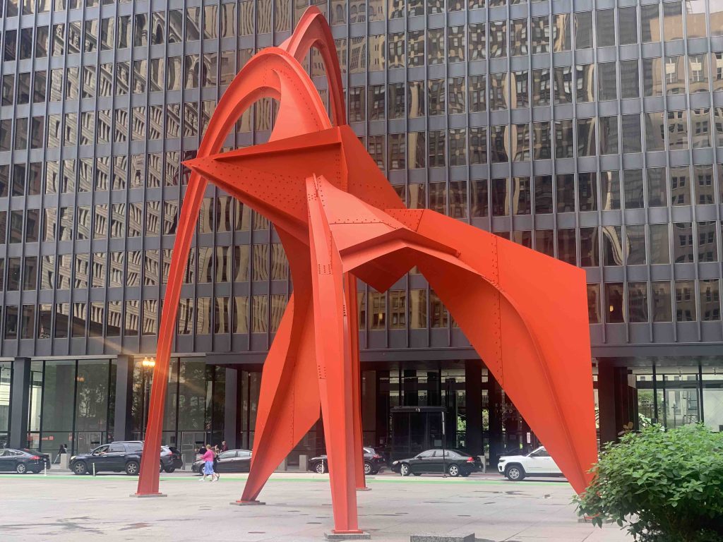 Seemingly everywhere there’s great public artwork, including Alexander Calder’s thrillingly good Flamingo, 1974.