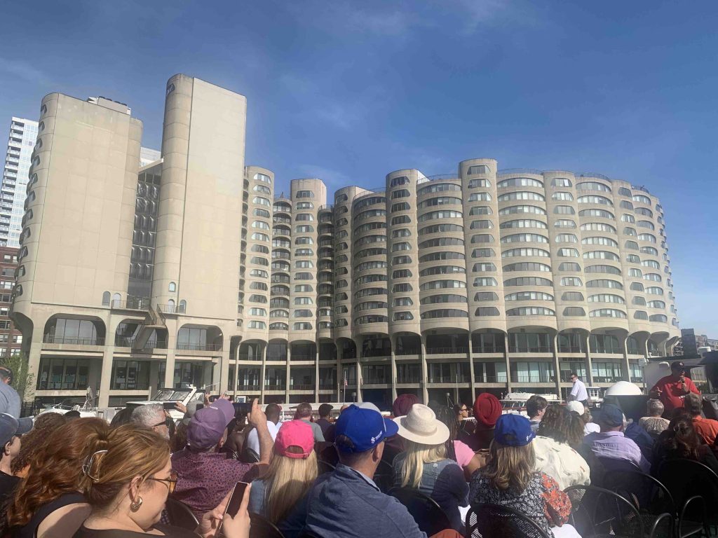 Not quite the first thing that we did, but on our first afternoon we took the boat tour organised by the Chicago Architecture Center – this is the real deal, although there are several competing offers, which only goes to show how popular architecture is. With the afternoon sun ensuring that everything looked spectacular, this was 90 minutes traversing the central stretch of the river, briefly up both north and south branches, and then out to the lake. Our guide was a native Chicagoan who introduced us to some 90 buildings, every time with a salient design fact or anecdote.