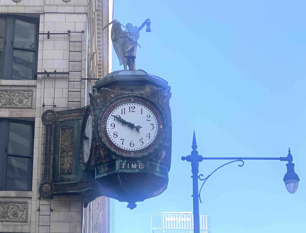 There’s much that’s wrong here. I know it’s a deeply inequitable city, with homeless persons, often with kids, on every corner, but for this tourist so much is right too, down to the almost incidental beauty of the lamp standards and elaborate clocks on building corners.