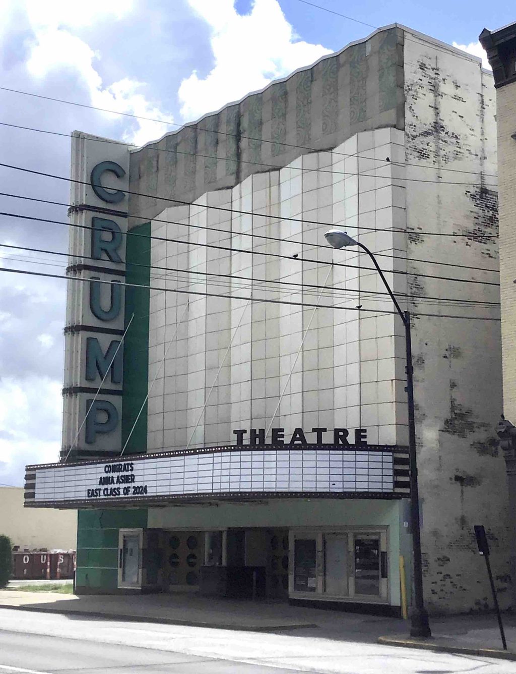 Around midday on day 3 we rolled into Columbus, Indiana, which is another notable town with this name – but one that almost no-one has heard of, at least among the Americans who we talked to. This Columbus deserves its own Postcard, which will follow, so for the moment just enjoy this very fine facade of the town’s deserted theatre (which has a fascinating history – click on the link).