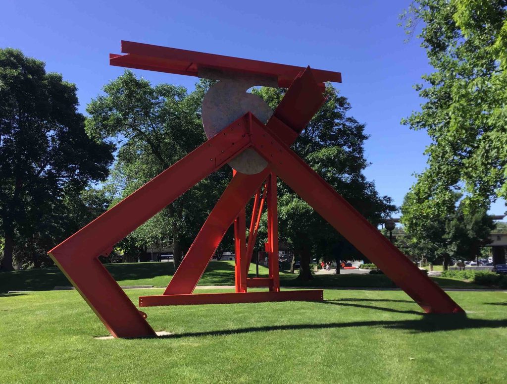 Our second day on the road comprised just a 90-minute hop into Columbus, Ohio. This is the urban environment called Columbus that most people have heard of, and we were there mostly for the Columbus Museum of Art. Here’s Paul Feeley’s Karnak (Sculpture Court), 1966, fabricated 1968/2015, outside the main entrance.