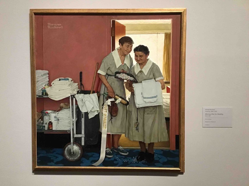 There are oddities too, like Norman Rockwell’s remarkable yet smuttily distasteful Morning After the Wedding, 1957.