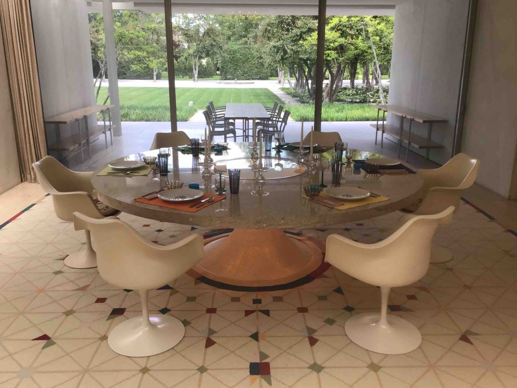 On our second day we took the tour of the Miller House and Garden, the home designed for and with J. Irwin and his wife Xenia by Eero Saarinen, with interior designer Alexander Girard and landscape architect Dan Kiley. It’s a fascinating mid-century house, commissioned in 1953, and built as a single story around a central living area with a ‘conversation pit’ at its centre.