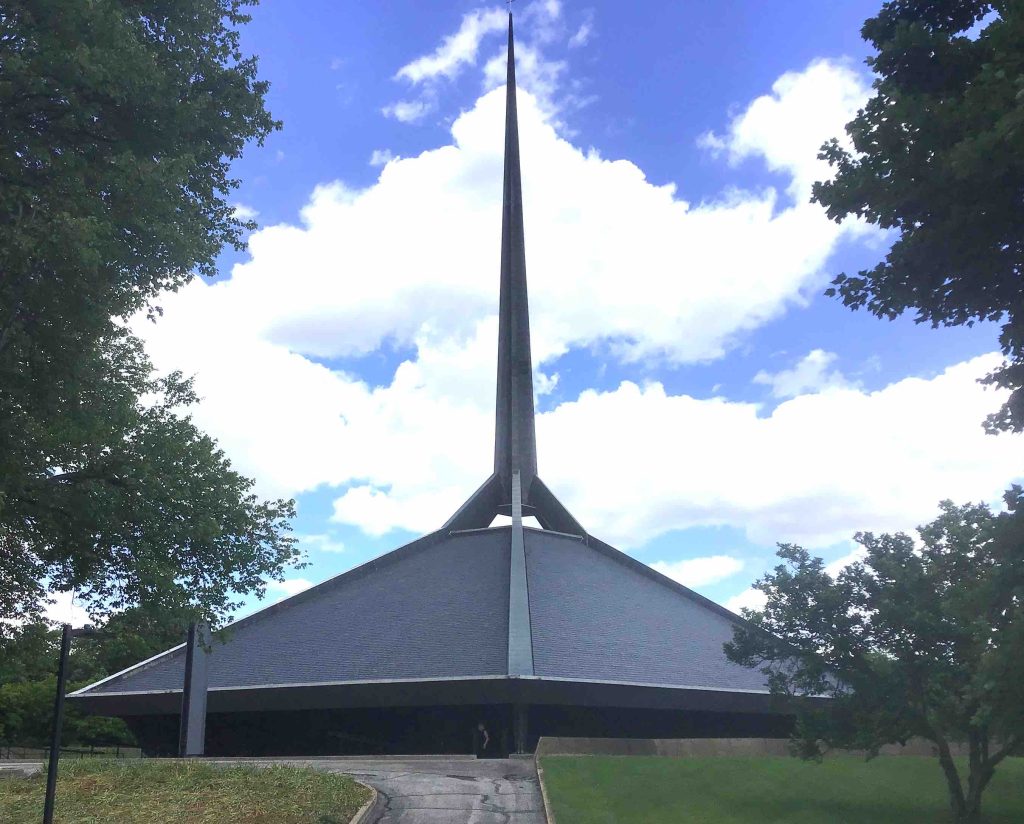 Just a little further on we more or less bumped into the First Christian Church, the architect for which, back in 1942, was Finnish-American Eliel Saarinen. This was the first contemporary building in Columbus and one of the first modernist churches in the United States. When the idea of a new church was first mooted, there were plans for a neo-gothic building, but J. Irwin Miller, nephew of the wife of the pastor, had recently completed an architectural appreciation course at Yale, proposed a Modern church instead.