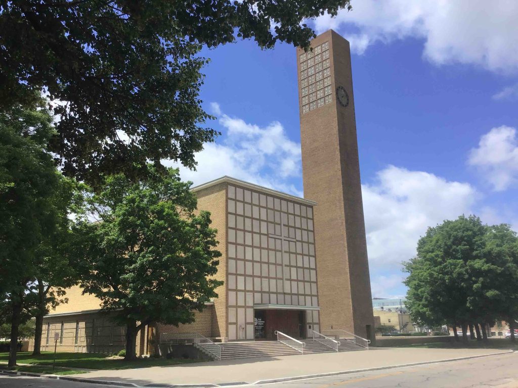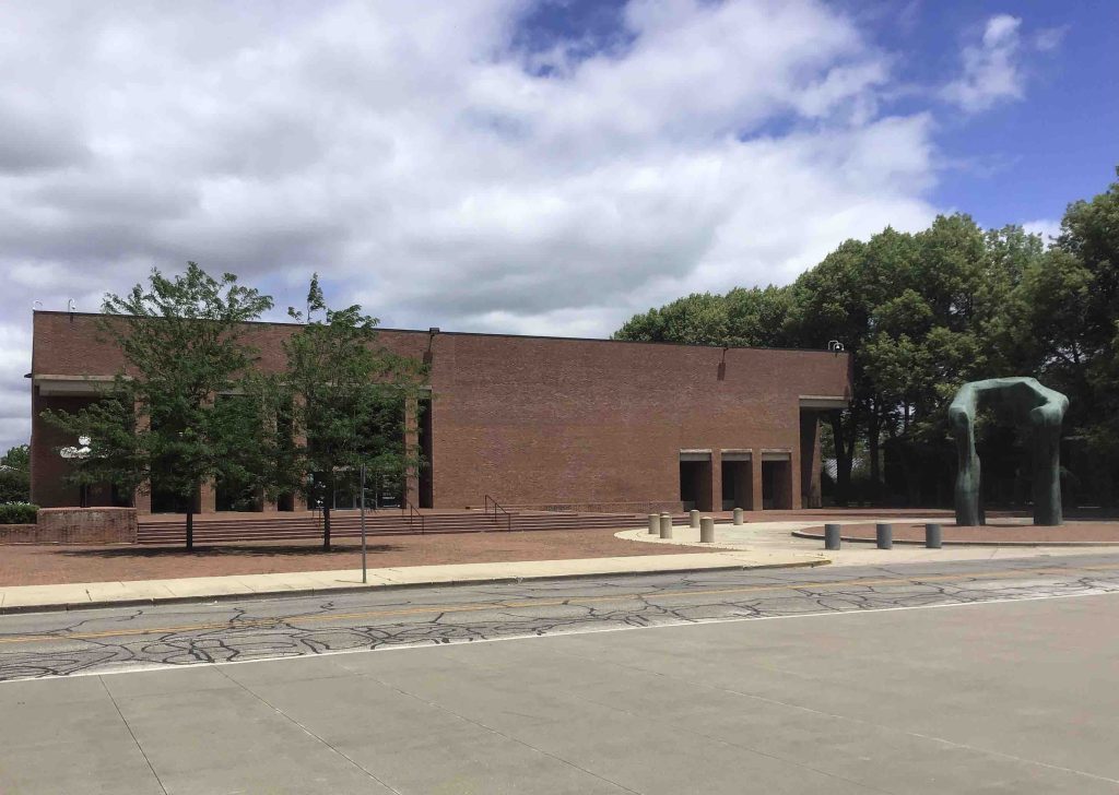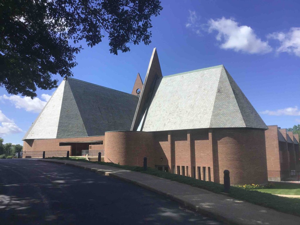 Architect Eliel was the father of the more famous Eero, who designed interior details and of whom there’s lots more to come in our story, including in Columbus. For the moment, however, note that directly across from this church is Bartholomew County Library, designed by I.M. Pei and opened in 1969.