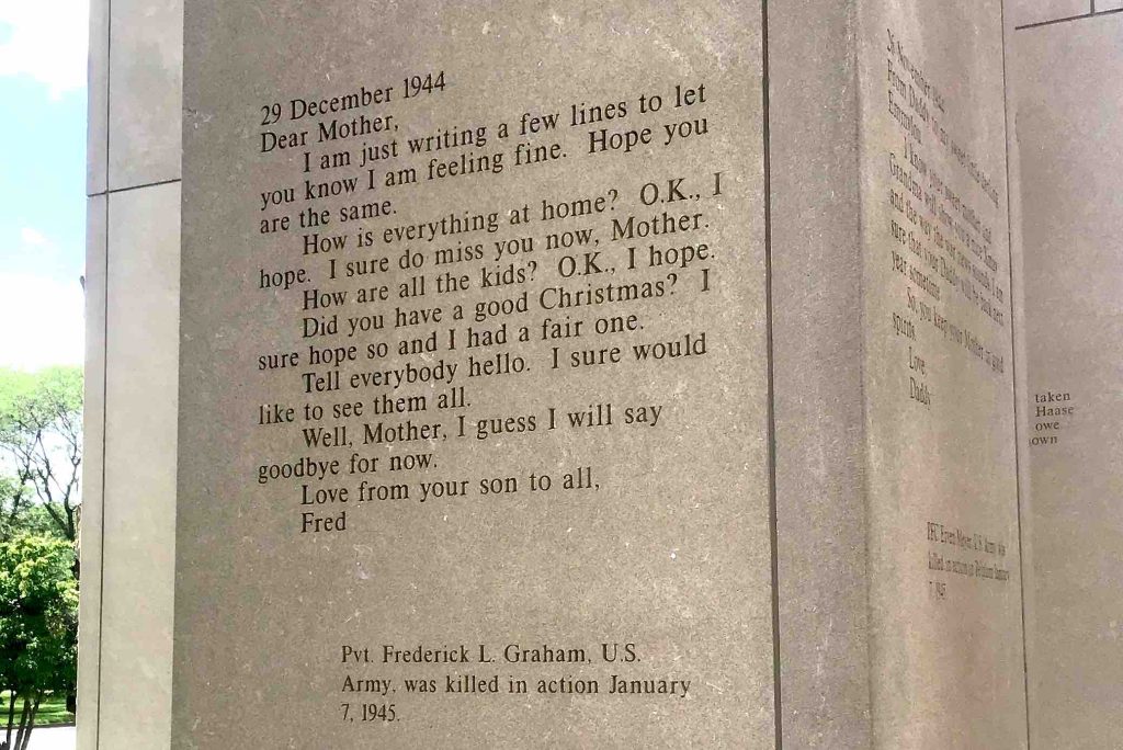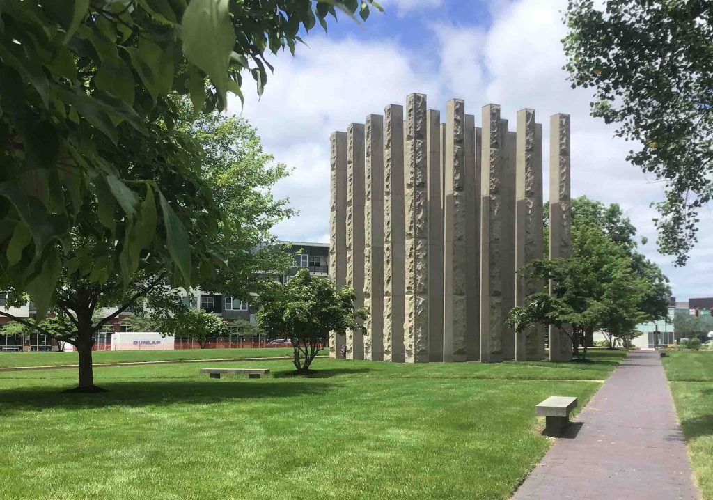 The town’s very fine Memorial for Veterans was created in 1997 by Thompson and Rose Architects, working with landscape architect Michael Van Valkenburgh. This is distinguished by inscriptions taken from letters sent by and to women and men who died in military service. You inevitably slow down to read them and to reflect on the sacrifices made, and the effect is truly moving.