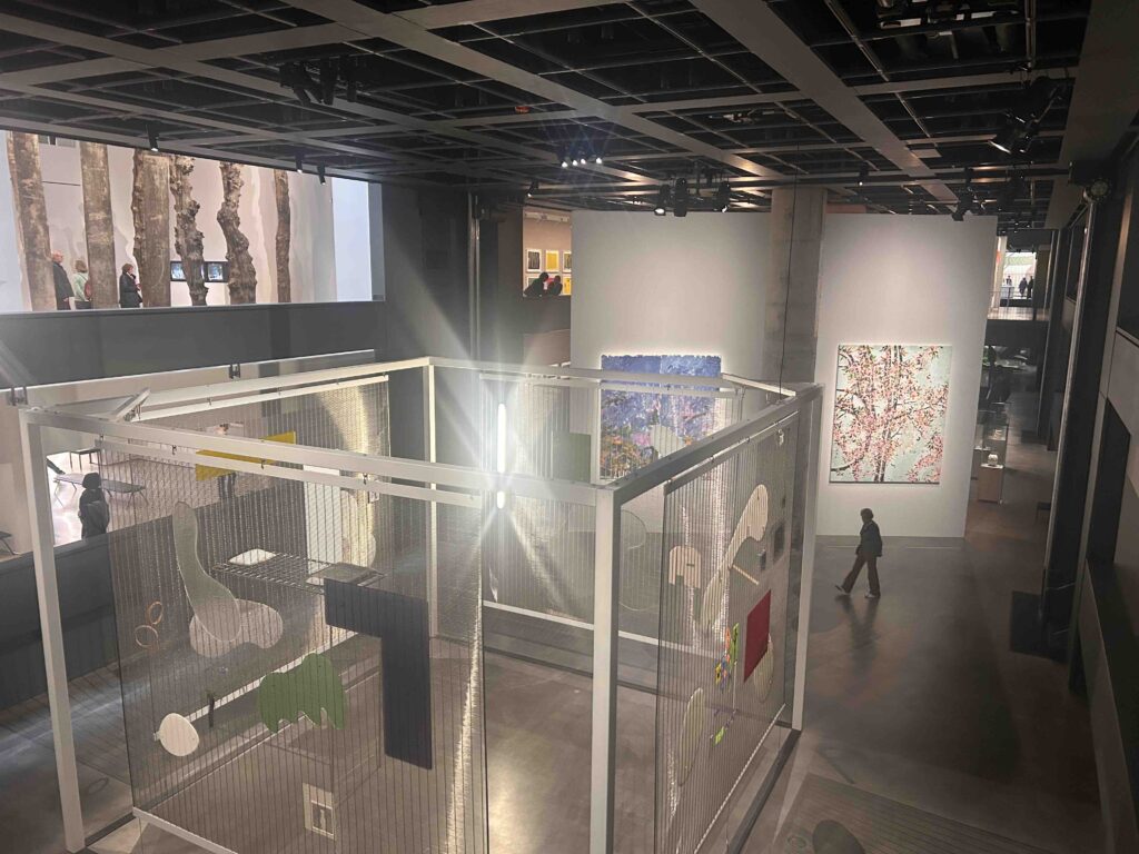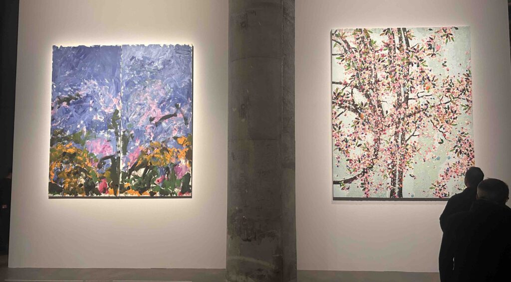 Maybe it was my lunchtime wine, but I found it initially challenging and ultimately simply confusing. There was spectacle, certainly, although I found the internal spaces, which have floors that can move up and down, at times cramped and not especially congenial for looking at the art. There were things familiar, including a fine pairing of La Grande Vallée VI, 1984 by Joan Mitchell and Wonderful World Blossom, 2018, by Damien Hirst, below, but so, so much that I was encountering for the first time – and without much to help me get my bearings.