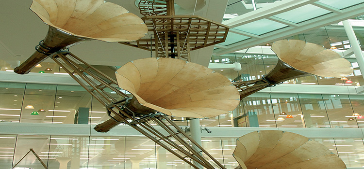 From early works such as The Nervous System, 2002 – a monumental spinning machine that endlessly weaves a length of coloured rope into the form of a double helix, the shape of DNA – to his recent giant spiral work Continuum, 2004, the artist has attempted to visualize, among other things, the incomprehensible of human concerns, time.