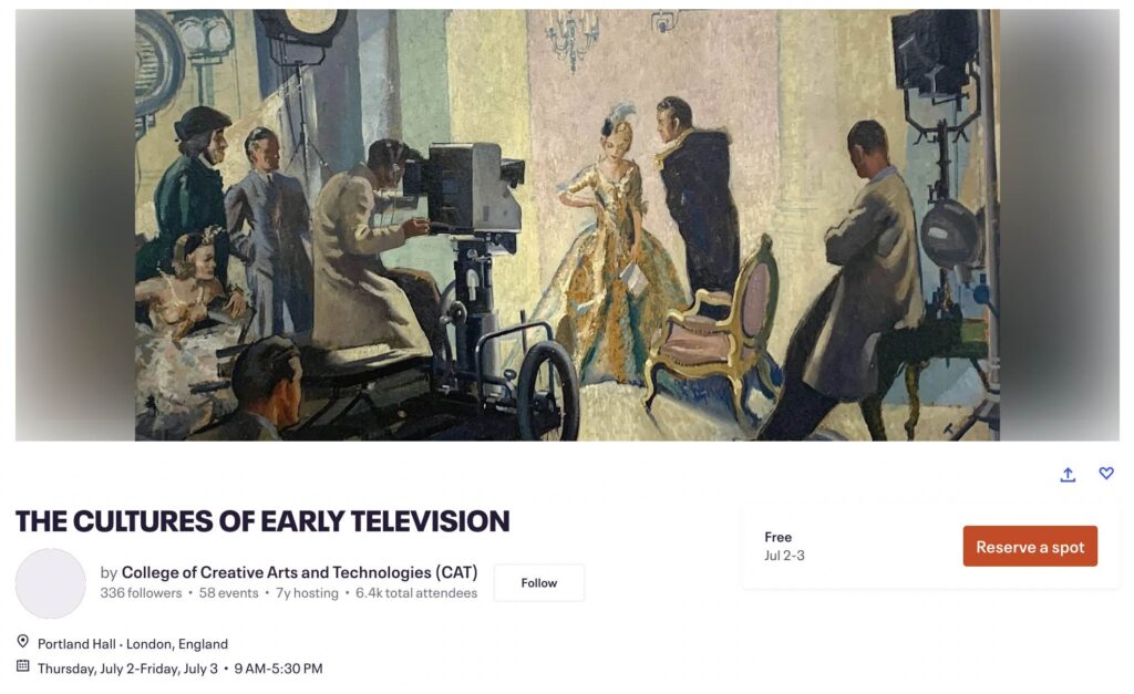 John Wyver writes: I am delighted to say that registration is open for The Cultures of Early Television conference at the University of Westminster on Thursday 2 and Friday 3 July You can sign up here for free, thanks to the invaluable support of The British Academy Conference scheme.