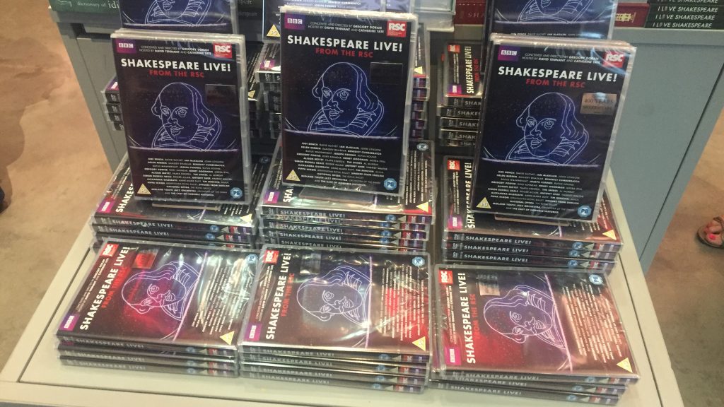 Shakespeare Live! From the RSC is now available as a Region 2 DVD. Here it is on display today in the Royal Shakespeare Theatre in Stratford-uopn-Avon. Which is where it was broadcast from on 23 April. That is all.