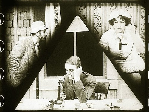 There are a number of earlier employments of split-screen techniques, and historian Barry Salt has identified examples from 1901 onwards. These often employ split-screens to visualise the connection between two parties using another central technology of modernity, the telephone. An especially intriguing example features in Lois Weber’s drama Suspense (1913), a frame from which is featured in the header image. (The reasonable quality print below of the 10-minute film includes a pre-title quotation from Kevin Brownlow stating, ‘the split-screens had been established earlier in Denmark’.